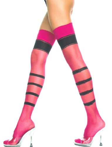 MusicLegs Pink Buckle Overkneestrümpfe hotpink MusicLegs, pink/schwarz (pink/black), Einheitsgroesse 36-40 Feature