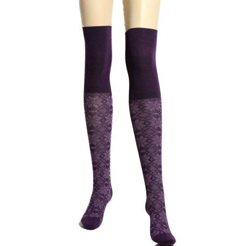 Overknees / Overknee Strümpfe mit Norwegermuster violett