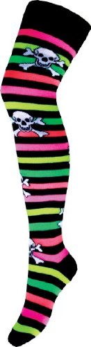 Stylische Gothic & Punk Overknees Strümpfe - Multi Colour Stripes & Skulls