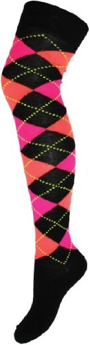 Stylische Overknees Strümpfe - Multi Colour Squares Feature