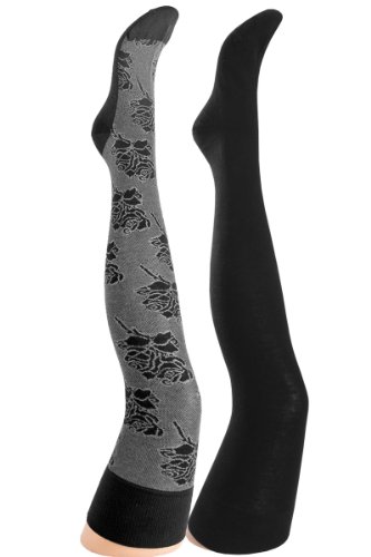 Vitasox Damen-Overknee 2er Set Floral-Rose & uni schwarz 35/38