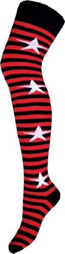 Stylische Overknees Strümpfe - Red Stripes & White Stars Feature