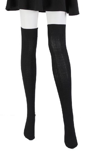Overknees / Overknee-Strümpfe in Zopfstrick Optik schwarz