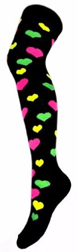 Stylische Overknees Strümpfe - Multi Colour Hearts Feature