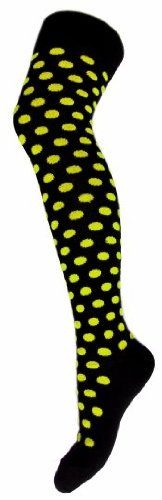 Stylische Overknees Strümpfe - Neon Yellow Polka Dots