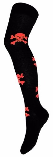 Stylische Overknees Strümpfe - Orange Skulls
