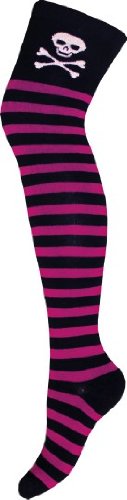 Stylische Overknees Strümpfe - Pink Stripes & Skull
