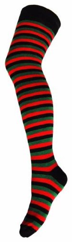 Stylische Overknees Strümpfe - Red and Green Stripes
