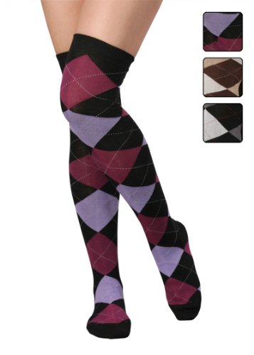 1 Paar original celodoro Overknees "Check 2" - modisches Karomuster in 3 verschiedenen Farben - tolle Qualität one size,Violett Feature