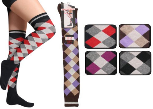 4 Paar Damen Overknee Strümpfe kariert Feature