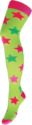 Stylische Gothic & Punk Overknees Strümpfe - Neon Yellow & Multi Colour Stars