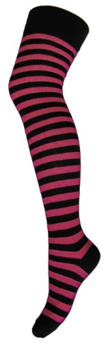 Stylische Overknees Strümpfe - Fuchsia Streifen