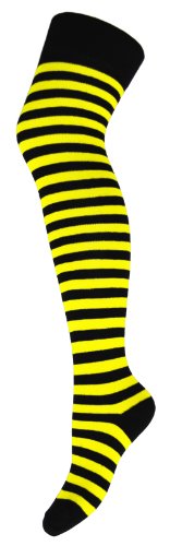Stylische Overknees Strümpfe - Yellow Stripes Feature