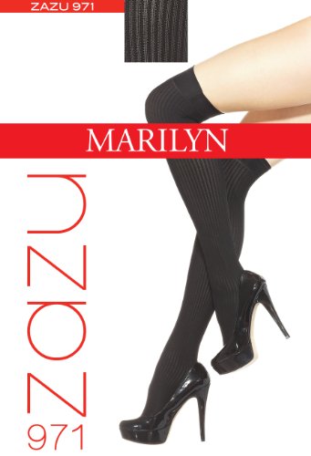 MARILYN, ZAZU-971-BK-OZ, gemusterte halbtransparente Overknees, 100 Denier, Größe 36/40 (one size), Farbe Schwarz (black) Feature
