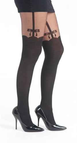Side Bow Suspender Strumpfhose schwarz