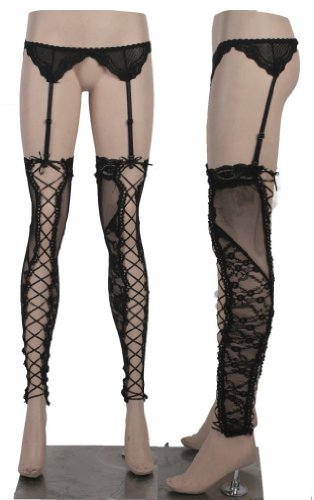 Strapse Strapsgürtel mit Bein Stulpen Spitze schwarz XS-L Punk Rave Overknees Feature