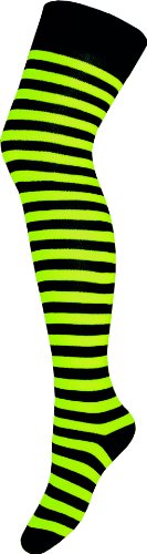 Stylische Overknees Strümpfe - Neon Yellow Stripes