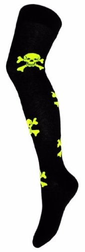 Stylische Overknees Strümpfe - Neon Yellow Skulls