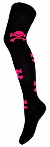 Stylische Overknees Strümpfe - Pink Skulls Feature