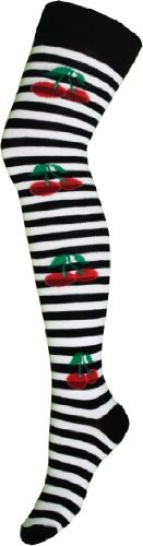 Stylische Overknees Strümpfe - White Stripes & Red Cherries Feature