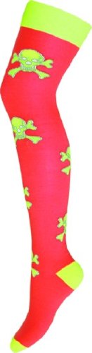 Stylische Overknees Strümpfe - Yellow Skulls