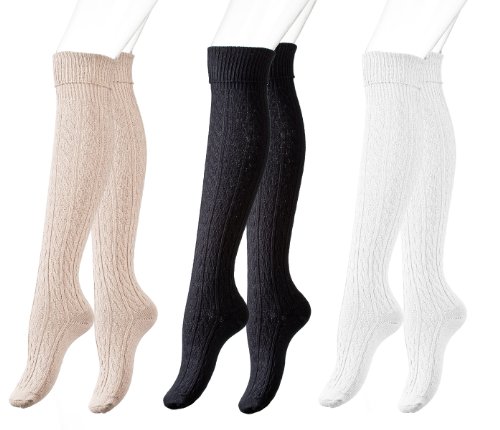 VCA Stiefel Kniestrümpfe mit Umschlag, Zopfmuster, Grobstrick, schwarz